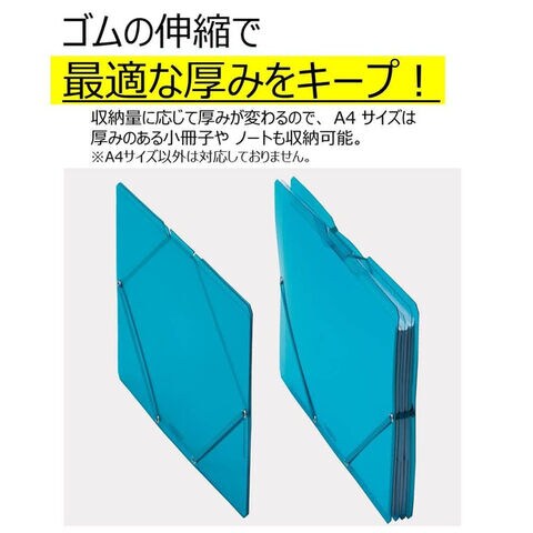 ゴムの伸縮で厚さが変わり最適な幅のファイルに変化します。