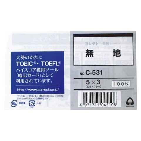 【1000円以上お買い上げで送料無料♪】コレクト 情報カード 5×3 無地 C-531 - メール便発送のレビュー