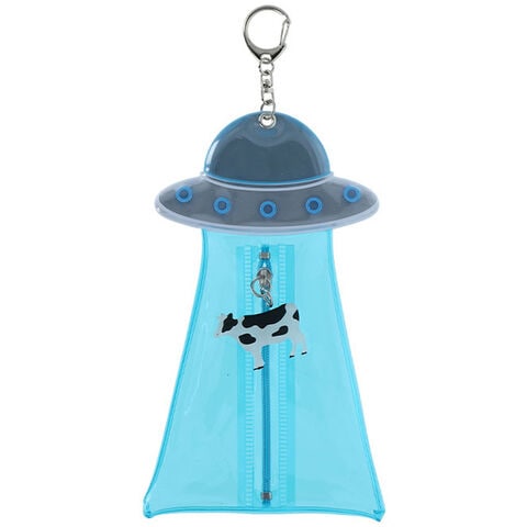 【送料無料】未確認飛行 フラットポーチ ブルー キーホルダー UFO 牛 リフレクター 小物入れ 推し活 面白グッズ サンスター文具 - メール便発送