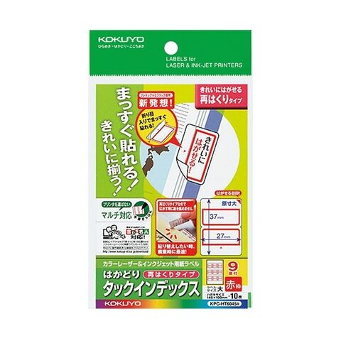 コクヨ カラーLBP&IJP用はかどりタックインデックス(再剥離)ハガキ大9面10枚赤