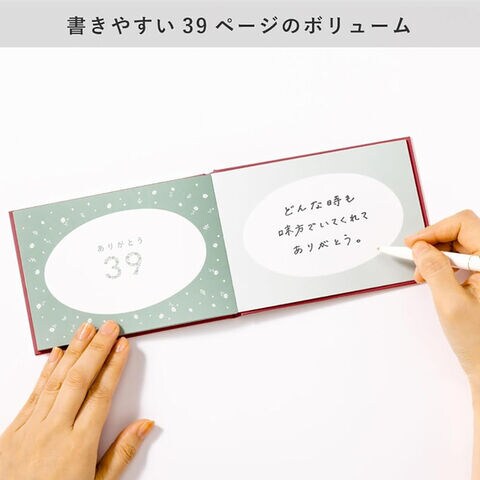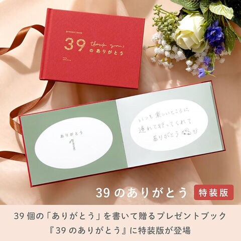 サンキューにちなんで、39個の「ありがとう」を書いて贈るプレゼントブック「39のありがとう」です。