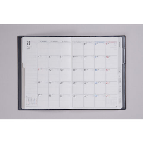 【詳細】[ロジェシリーズ]名前の由来となったフランス語「projet(プロジェ)」は「計画・企画」という意味。たくさんの計画やすばらしい企画を手帳にたくさん書きこむために、月間ページと大量のメモページが一緒になりました。●「手帳とノートを一緒に持ち歩きたい!」そんな声から生まれた、スケジュール帳と130頁以上のノートが一冊になったシリーズです。会議にもお出かけにも、どこでも一緒の頼もしいパートナー。「メモ用目次」ページ付き。●月間ページ:月曜始まりで、週末の予定が把握しやすいレイアウト。1日の記入スペースが上下段に分かれているので、予定を書き分けるのに便利です。●130ページ以上のメモページを収録。ページナンバーが振ってあります。