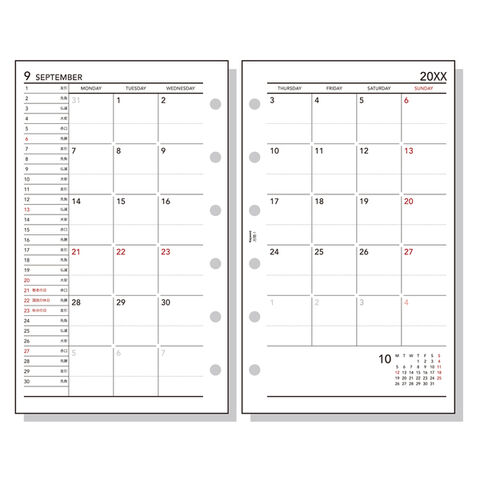 【レイアウト】見開き両面1ヵ月ブロック式 マンスリー 月間 ブロック