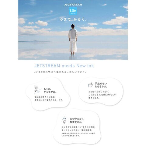 新開発の“かろやか”なインク『JETSTREAM Lite touch ink (ジェットストリーム ライトタッチインク)』が登場!