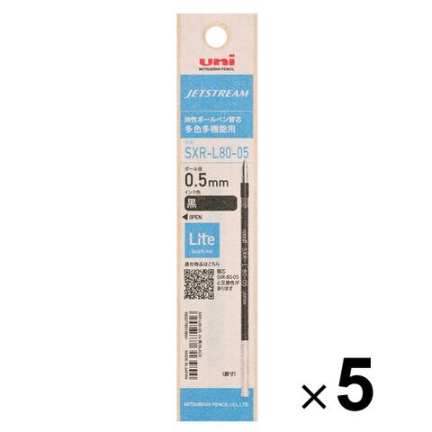 【5個セット】 ジェットストリーム替芯 多色多機能用 SXR-L80-05 0.5mm Lite touch ink 黒 ボールペン リフィル 紙パッケージ