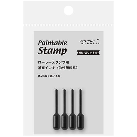 ペインタブルスタンプ ローラー用補充インキ 黒 油性 0.25ml 4本入 使い切りボトル ミドリ