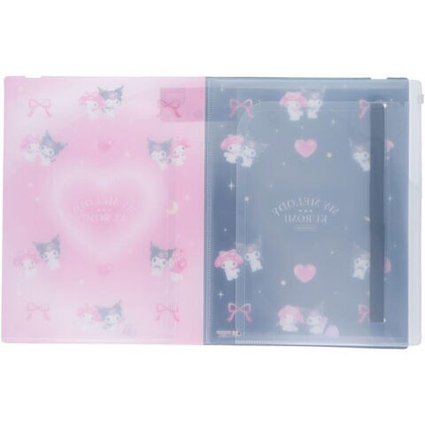 マイメロディ&クロミ ゴムバンド付きクリアファイル A4 5ポケット+ファスナー ドリーム ピンク ハート 人気 かわいい
