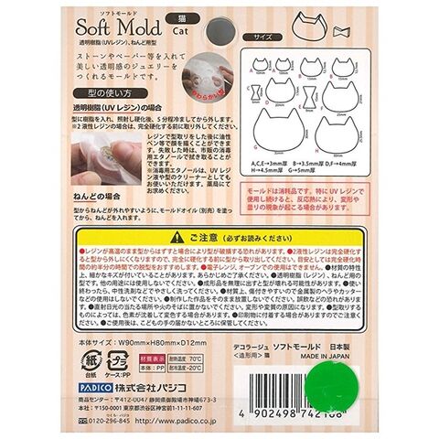 【1000円以上お買い上げで送料無料♪】パジコ レジン型 ソフトモールド 猫 - メール便発送