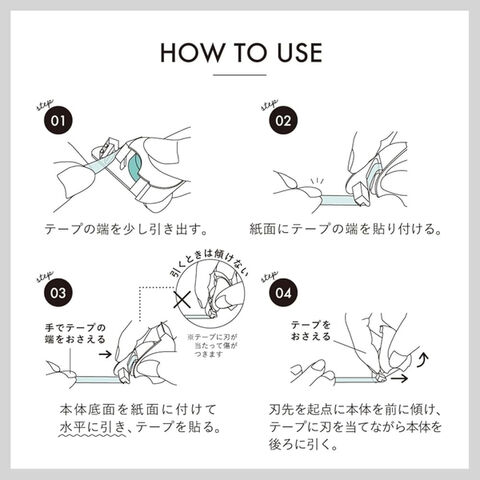 ※紙の素材や使用環境などによっては、テープをはがす際に紙の表面を傷つけたり、紙面の文字ごとはがれる・のり残りする恐れがあります。はがす際は優しくはがしてください。また、大事な本や古い本、貴重な本、借り物の本への使用はお避け下さい。
