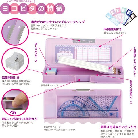 コンパクトふでいれ ヨコピタ バイオレット 両面 筆入れ ペンケース 鉛筆削り付 シンプル 無地 小学生 男の子 女の子 入学