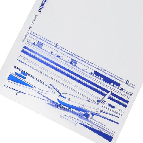 【1000円以上お買い上げで送料無料♪】ロルバーン ポケット付メモ L用 下敷き SHIMADA Rie A柄 ブルー 飛行機 クリア素材 ペンホルダー付 デルフォニックス - メール便発送