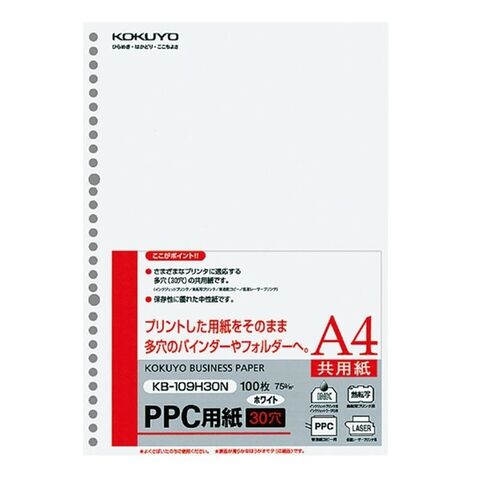 【送料無料】コクヨ PPC用紙 共用紙 30穴 A4 100枚 KB-109H30N 2個セット - メール便発送
