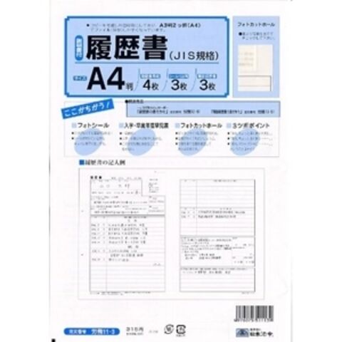 【1000円以上お買い上げで送料無料♪】日本法令 労務 11-3 履歴書 パートタイマー・アルバイト用 - メール便発送