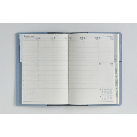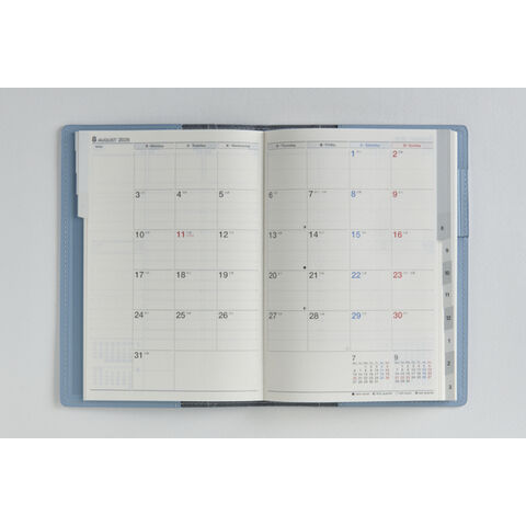 【月間予定表】カレンダーと同じ感覚で見ることができ、週ごとの予定が把握しやすいブロック式。平日の仕事の予定や、週末土日の予定をまとめて書きやすい月曜始まり。1日の記入スペースが上下段に分かれているので、予定を書き分けるのに便利です。 【週間予定表】時間管理がしやすいバーティカル式は、1日に複数の予定が入りやすい方におすすめ。月曜日から金曜日までをたっぷり書き込める平日重視型の記入スペースです。
