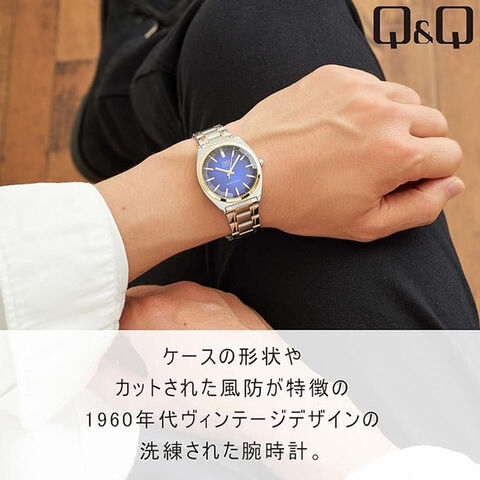 シチズン Q&Q 腕時計 アナログ 防水 メタルバンド QB78-412 メンズ シルバー×ブルー