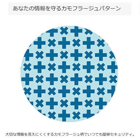 大切な情報を見えにくくするカモフラージュ柄で、いつでも簡単セキュリティ。