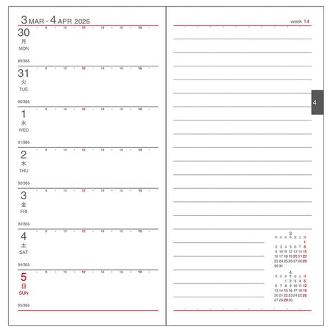 【レイアウト】1週間+横罫 ウィークリー 週間 レフト