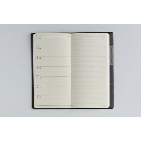 【月間予定表】カレンダーと同じ感覚で見ることができ、週ごとの予定が把握しやすいブロック式。1日の記入スペースが上下段に分かれているので、予定を書き分けるのに便利です。 【週間予定表】左にスケジュール、右に横罫メモが付いているレフト式。スケジュール欄は時間目盛りが付いていないので、時間に左右されずたっぷり書き込めます。メモスペースには会議の内容をメモしたり、思いついたことを書き込んだり、使い方は自由自在!