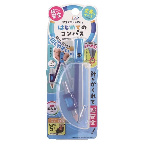 はじめてのコンパス ブルー 鉛筆用 PPケース付 人間工学ヘッド 安全 算数 クツワ