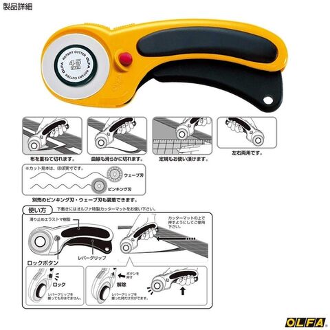 ●適合替刃:同社「円形刃45ミリ」(RB45)・「45ミリピンキング刃」(RB45P)・「45ミリウェーブ刃」(RB45W)
