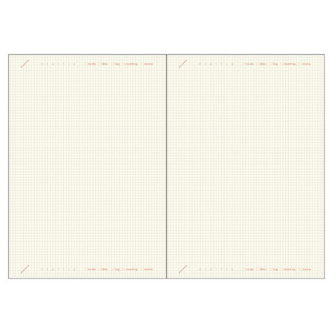 月間は余白がたっぷりで自由に使えます。ベースの2.5mm方眼は線をひいたり文頭を揃えるガイドにできます。フリーメモは必要な時に書きたい分だけ書けるフォーマット。ダイアリーと一緒に管理したい情報や記録を簡単にメモしておける、ちょうどいいページ数です。