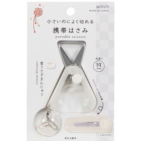 携帯はさみ 雪うさぎまんじゅう 和菓子 アクリルチャーム付 キャップレス スライド式 ボールチェーン付 かわいい クツワ