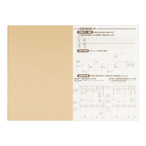 【内 容】使用説明、月間スケジュール、週間家計簿、メモ、月間収支一覧表(別紙)