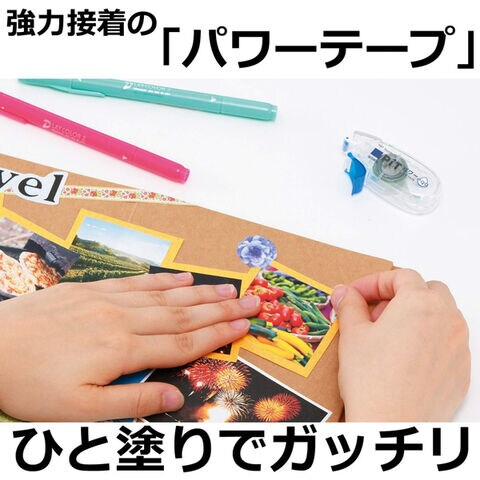 ●貼った瞬間から強力接着するパワーテープ搭載。封筒貼りやラッピング、スクラップや写真貼りなど、すぐにしっかり貼りたいときに最適です。
