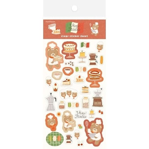 【1000円以上お買い上げで送料無料♪】シール くま クマ 透明 イタリア デザート 手帳 デコ かわいい 古川紙工 - メール便発送