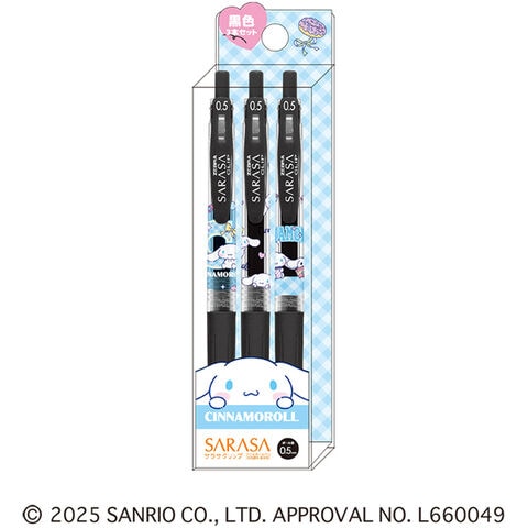 【送料無料】シナモロール サラサクリップ 0.5mm 3本セット 黒インク ジェルボールペン 水性 かわいい サンリオ カミオジャパン - メール便発送