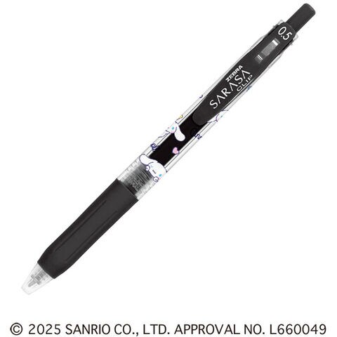 かわいい「シナモロール」柄♪サラサラなめらかな書き心地、ノック式ジェルボールペン「サラサクリップ」です。