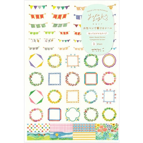 シール ゆるログ 1枚入 飾り柄 フレーム ガーランド 和紙 貼ってはがせる 再剥離 日記 記録 手帳 ノート かわいい ミドリ