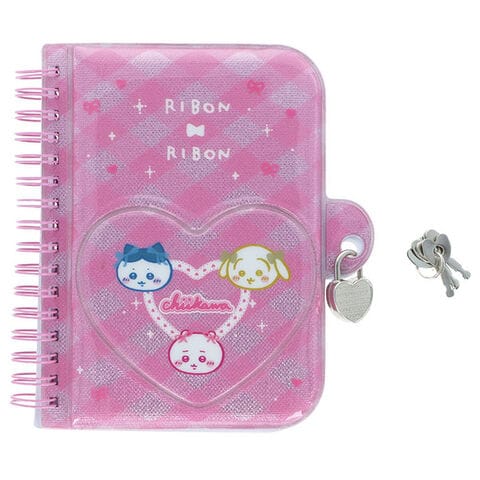 ちいかわ 鍵付きノート A6 リボン リング ハート ラメ表紙 交換日記 秘密 平成レトロ かわいい サンスター文具