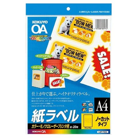 【送料無料】コクヨ カラーLBP&PPC用紙ラベルA4ノーカット20枚 [LBP-F690N] - メール便発送