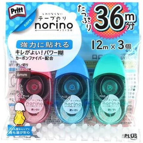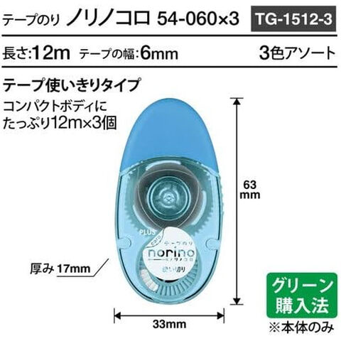 プラス テープのり ノリノコロ 6mm×12m 3個入 TG-1512-3 コンパクト 卵型 持ちやすい