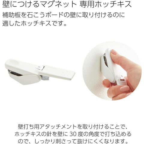 壁打ち用アタッチメントを取り付けることで、ホッチキスの針を壁に30度の角度で打ち込めるので、