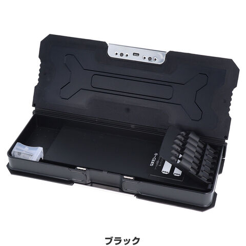 【送料無料】コンパクトふでいれ ヨコピタ ギガテクト ブラック 耐衝撃 2ドア 筆入れ ペンケース 鉛筆削り付 男の子 入学 - メール便発送