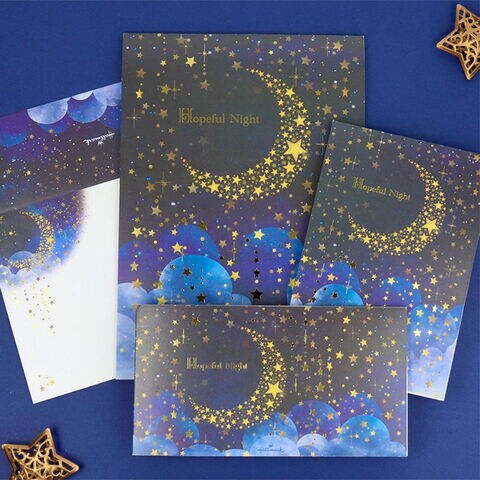 【1000円以上お買い上げで送料無料♪】一筆箋 ホープフルナイト 14枚 罫線なし コンフォート&ピース 月 星 箔加工 添え状 手紙 大人かわいい ホールマーク - メール便発送