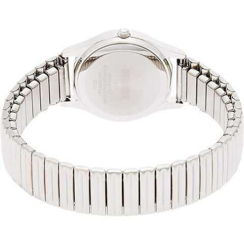 ベルトは、丈夫でさびにくいステンレスを使った、伸縮性のあるエクスパンションバンド。調節不要で簡単に脱着が可能です。