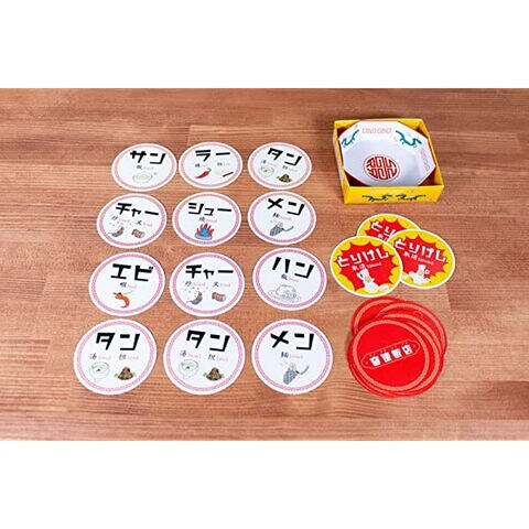 カードの早出しで中華を盛るゲーム 音速飯店』は、「タン」や「メン」「チャー」などの具材カードを、中華料理名を作るようにスピード勝負で人に割り込みながら中央のトレイに重ねて、いち早く手札を無くすカードゲームです。