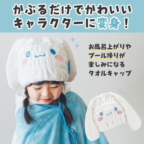 シナモロール 吸水速乾 タオルキャップ マイクロファイバー生地 お風呂 プール 海水浴 ドライヤー時短 かわいい