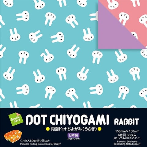 両面ドットちよがみ 15cm角 うさぎ 6色調×各6枚 小物入れの折り図付 千代紙 折り紙 知育 かわいい ショウワノート