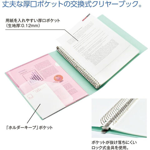 丈夫な厚口ポケットの交換式クリヤーブック。
