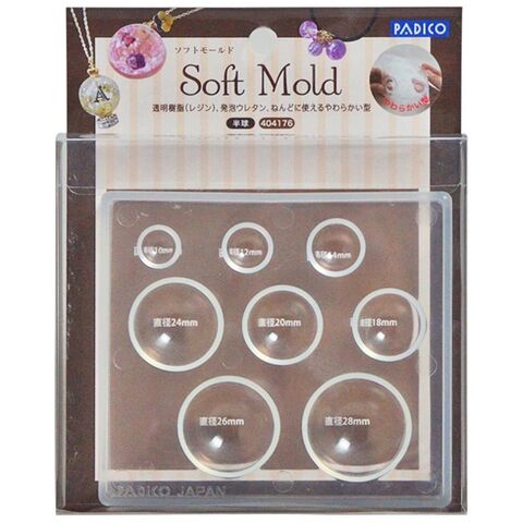 粘土や透明感のあるレジンクラフトにも楽しめるソフトモールド。ソフトモールドは、型抜きしても抜きやすく、透明なので作品づくりに便利です。●半球型の仕様: 直径10mm、12mm、14mm、18mm、20mm、 24mm、26mm、28mm