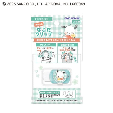 【1000円以上お買い上げで送料無料♪】サンリオ ポチャッコ なふだクリップ ぎゅっと 名札 防犯 通園 通学 簡単 - メール便発送