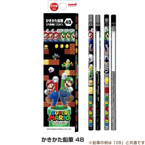 スーパーマリオ 文具2点セット かきかた鉛筆4B/消しゴム 簡易ラッピング 2026年モデル 小学校 入学 お祝い プレゼント