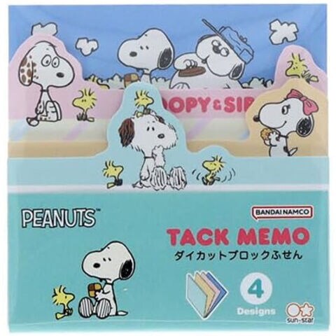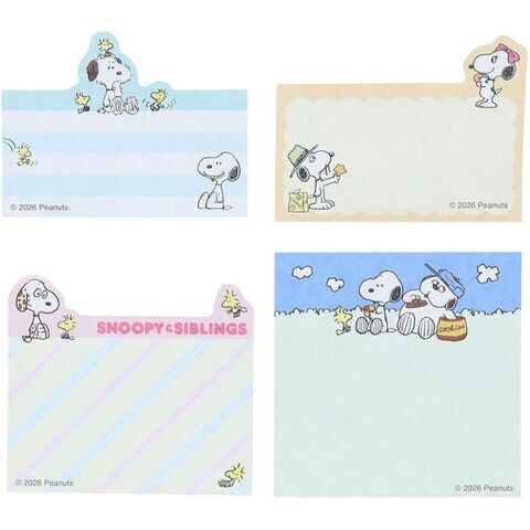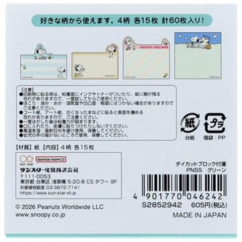 スヌーピー ダイカットブロック付箋 グリーン 4柄×各15枚 シブリングス きょうだい ピーナッツ かわいい サンスター文具