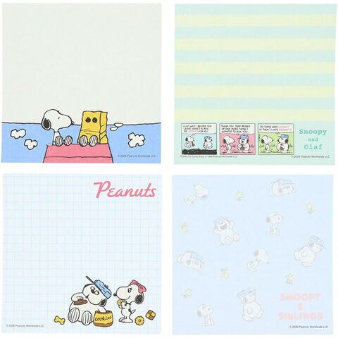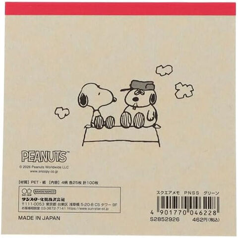 スヌーピー スクエアメモ グリーン 9.5cm 4柄×各25枚 シブリングス きょうだい ピーナッツ かわいい サンスター文具