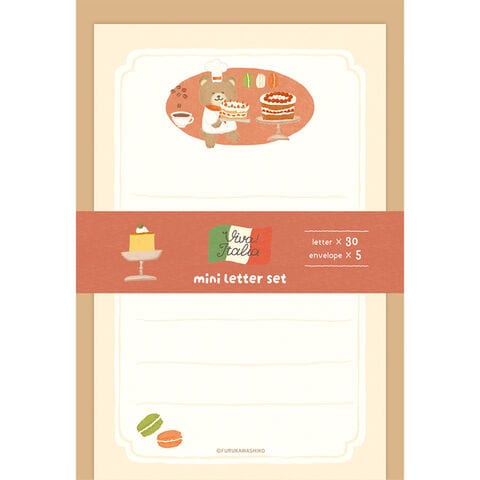 【1000円以上お買い上げで送料無料♪】ミニレターセット Viva! Italia イタリア デザートくま 美濃和紙 便箋 クラフト封筒 スイーツ クマ かわいい 日本製 - メール便発送