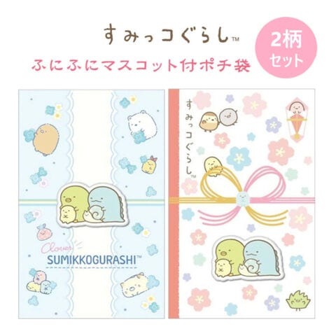【1000円以上お買い上げで送料無料♪】ポチ袋 ぽち袋 すみっコぐらし ふにふにマスコット付 2柄セットB 6枚入 かわいい キャラクター お年玉 正月 子供 サンエックス - メール便発送
